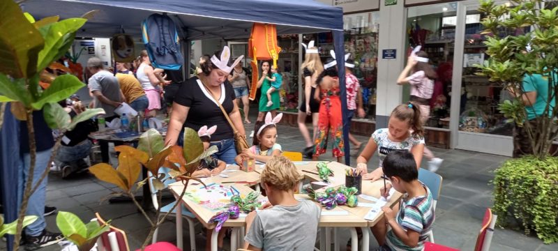 Além da tradicional caça aos Ovos, as crianças participaram de várias oficinas e brincadeiras, como: pintura de rosto, pintura de orelhas de coelhos, corrida do coelho maluco e pintura de Ovos de Páscoa.
