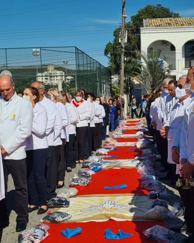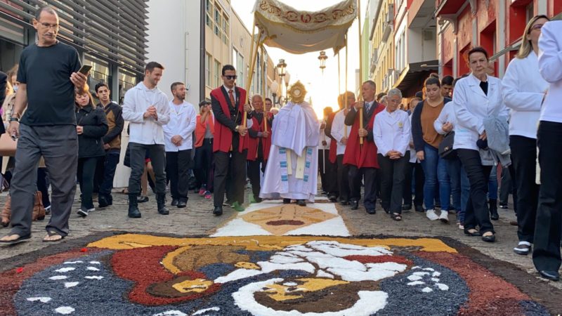 Os fieis voltaram a fazer os tradicionais tapetes de Corpus Christi, nesta quinta-feira (16), após mais de dois anos de paralisação por conta da pandemia da Covid-19, e movimentaram as ruas da Grande Florianópolis.