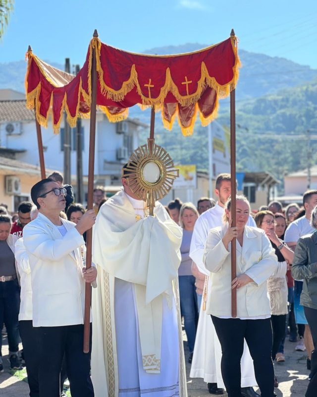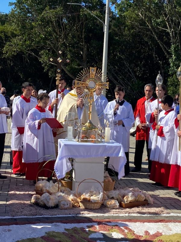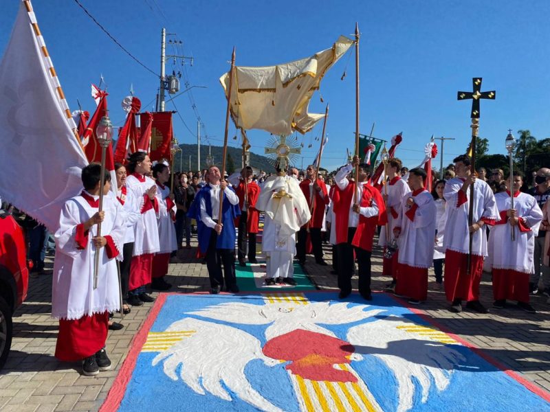Além da tradicional confecção do tapete, a Paróquia Sagrado Coração de Jesus contou com a procissão – Foto: Pascom/Arquidiocese de Florianópolis/Divulgação/ND - 9 de 14