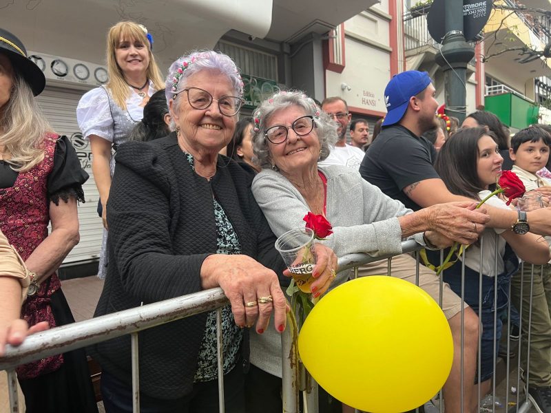 E a festa é para todas as idades. As “vovós tiktokers” de Brusque também fizeram questão de acompanhar ao vivo o desfile da Oktoberfest em Blumenau. Conhecidas como Vó e Tita, uma tem 83 anos e a outra 86, e acumulam mais de um milhão de seguidores no TikTok.