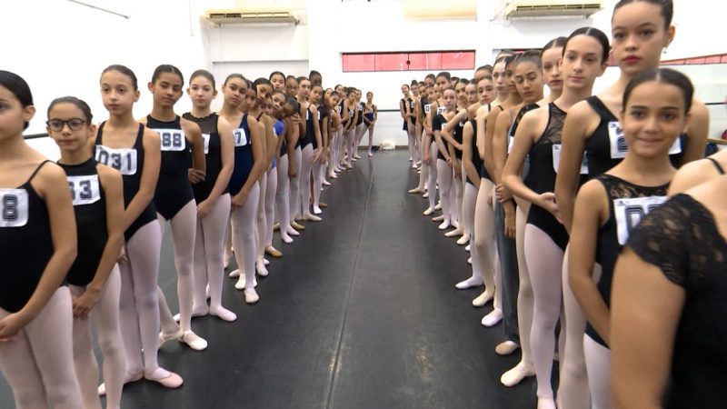 Organização e disciplina: quem vê a perfeição dos espetáculos não imagina quanto trabalho tem por trás. Uma das pessoas que está nos bastidores é a Sylvana Albuquerque, há 21 anos na escola. Ela conhece a rotina como a palma da mão. Sylvana é coordenadora de Produção e Evento: essa função vai desde os espetáculos da escola, os eventos externos e internos, workshops até a pré-seleção e seleção. “É onde a gente busca novos talentos para ingressar na escola Bolshoi. Organização é tudo. Quando a gente fala de Bolshoi, a gente fala de muita responsabilidade, de cuidado com o outro, e a gente fala realmente de organização, disciplina, e assim em todas as esferas da escola”, completou Sylvana. – Foto: Reprodução TV/Divulgação ND - 10 de 11