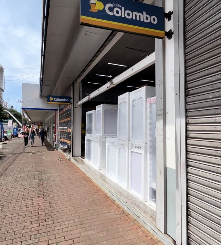 Outra loja usou os eletrodomésticos em liquidação para fechar parte da entrada e criar suspense nos clientes. Quem passa pela loja fica intrigado para saber o que tem por trás dos produtos. – Foto: Willian Ricardo