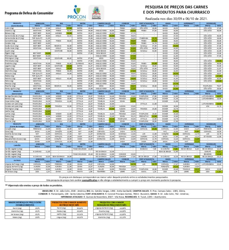 Quer economizar na hora de comprar as carnes para fazer o churrasco no feriadão ou os itens da cesta básica? Melhor conferir a nova pesquisa divulgada nesta quinta-feira, dia 7, pelo Procon de Joinville.