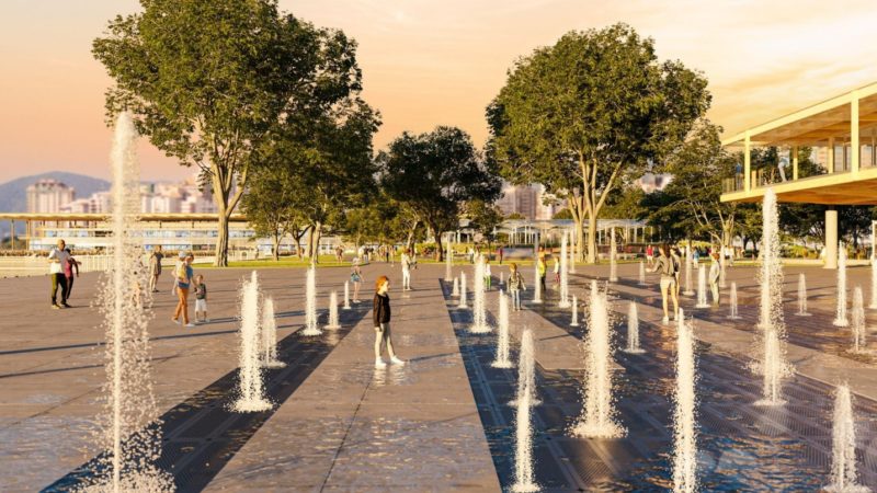 Imagem mostra a “praça molhada” do parque urbano – Foto: Divulgação/ND