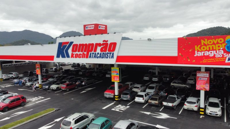 O novo supermercado Komprão Koch Atacadista foi inaugurado em Jaraguá do Sul, na rua Walter Marquardt, 1400, bairro do Rio Molha. O empreendimento é um complexo com 14 mil metros quadrados de área construída que vai contar com outras sete lojas incluindo um grande grupo de material de construção.