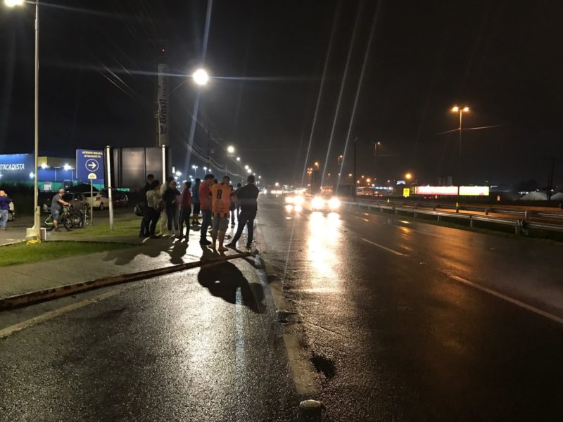 Além disso, os manifestantes estavam reunidos no Km 116, da BR-101, em frente ao prédio da Havan, em Palhoça. Porém, por volta das 21h, o trânsito foi liberado, mas continuavam ao lado da rodovia.