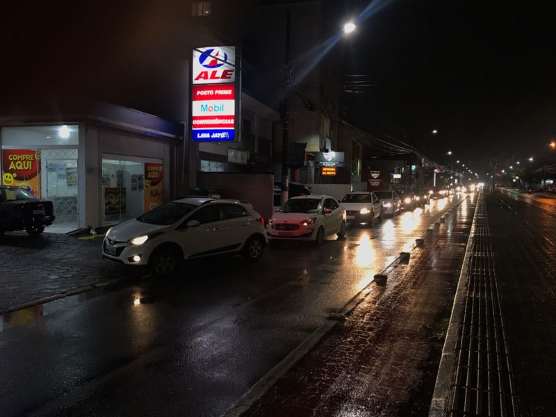 Por volta das 19h, postos de combustíveis da Praia Comprida, em São José, registravam filas – Foto: Leo Munhoz/ND