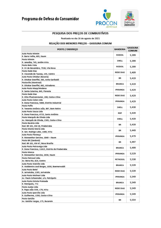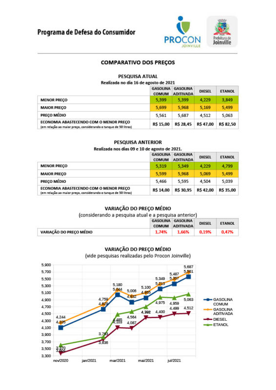 Após novo reajuste no valor dos combustíveis, a Prefeitura de Joinville, por meio do Programa de Proteção e Defesa do Consumidor (Procon), decidiu fazer uma pesquisa extra de preços, realizada no dia 16 de agosto.