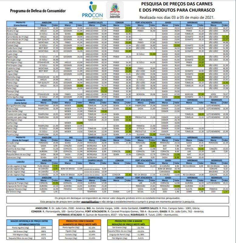 Mais duas pesquisas de preço realizadas pelo Procon de Joinville para ajudar a população a encontrar o melhor preço, tanto na cesta básica quanto na carne para churrasco.