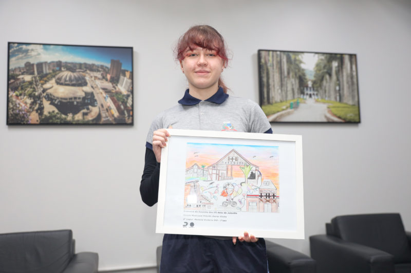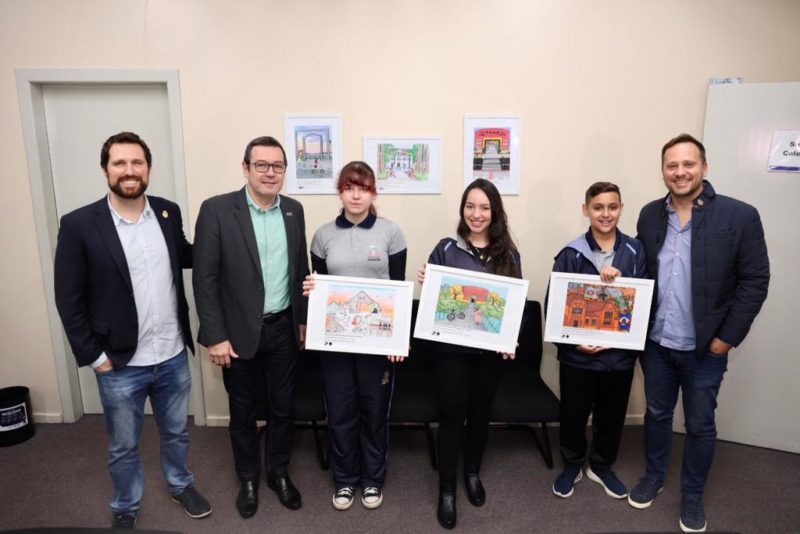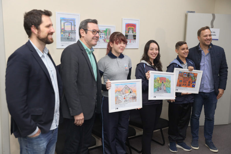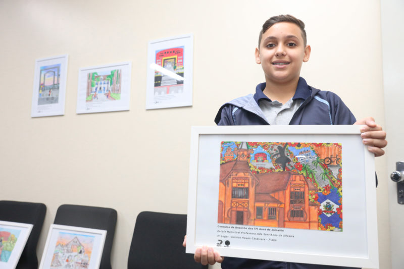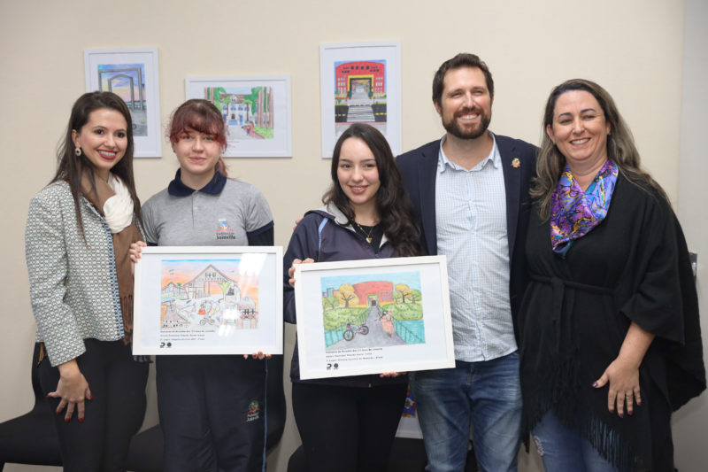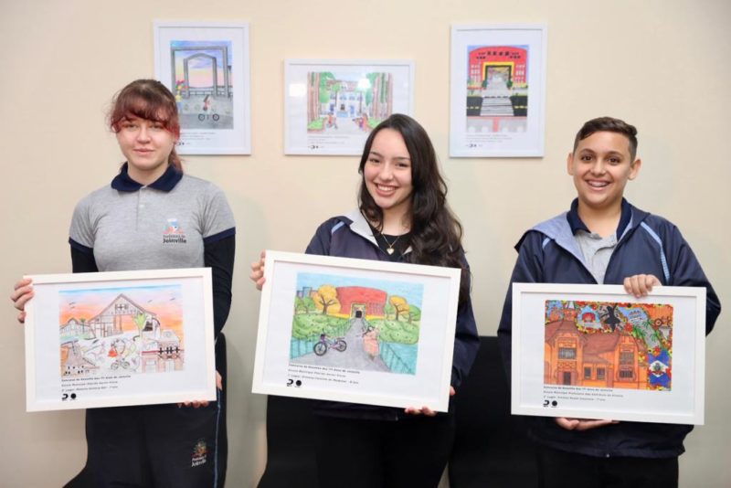 Além do café com o prefeito de Joinville, Adriano Silva, os estudantes ganharam certificado e tiveram seus desenhos transformados em quadros que ficarão em exposição na sala do colegiado da Prefeitura.