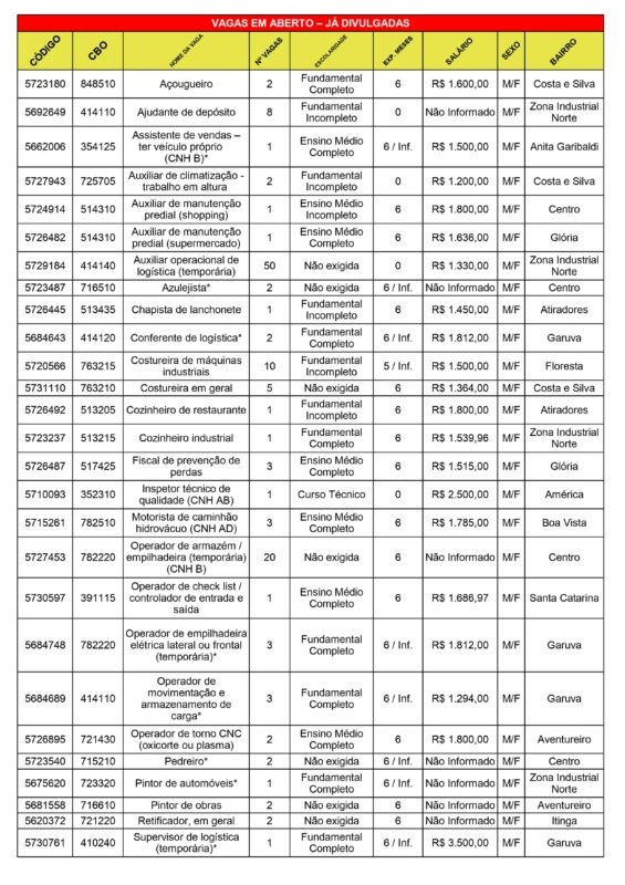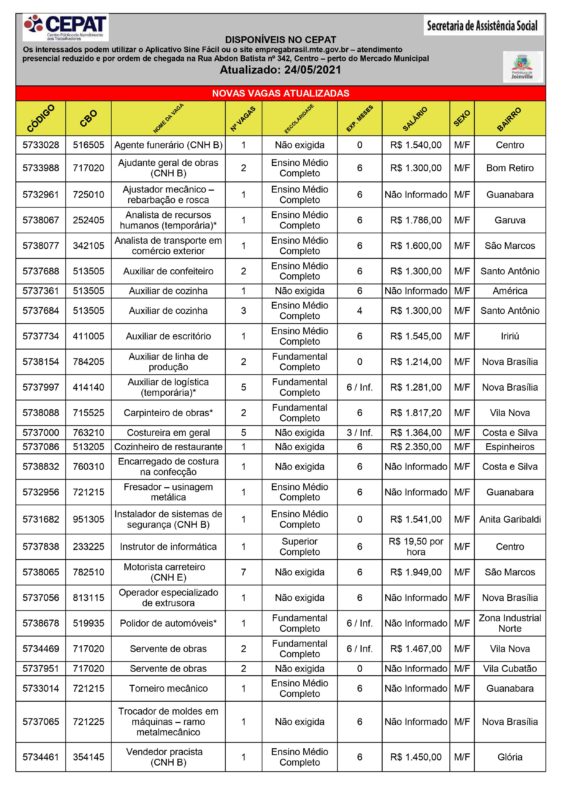 Todas as vagas disponíveis no CEPAT estão abaixo, mas também podem ser acessadas no site da Prefeitura de Joinville.