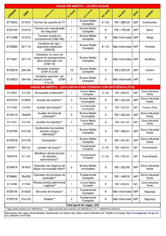 Confira as oportunidades