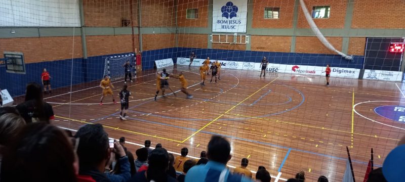 O Handville não decepcionou. O goleiro Magro fez importantes defesas. O ataque em sintonia deu um show em quadra. Fim do primeiro tempo e o tricolor na segunda metade foi só vantagem no placar.
