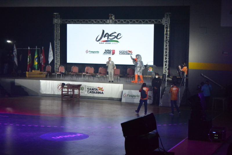 Foi aberto oficialmente, na noite deste sábado (20), o Jasc (Jogos Abertos de Santa Catarina) 2021. Apesar das competições já estarem em andamento, a cerimônia com o acendimento oficial da tocha foi realizada na Arena Multiuso, em São José.