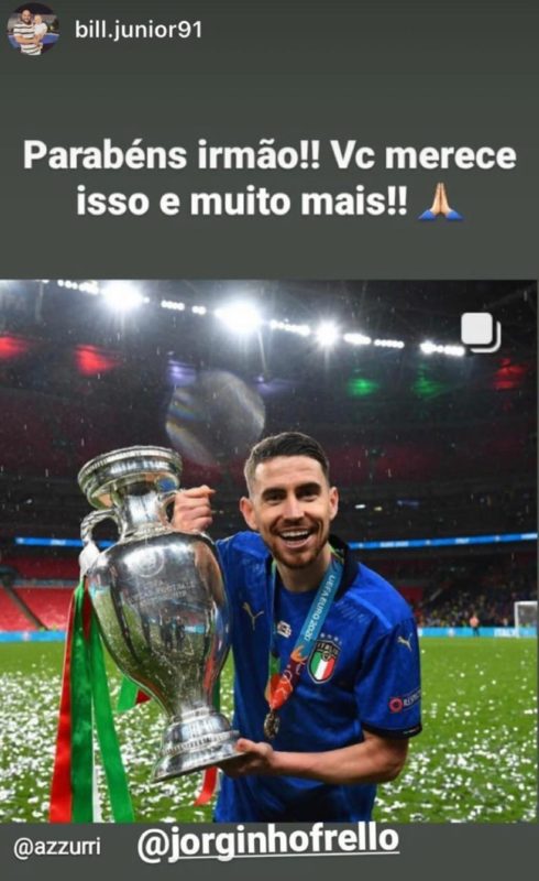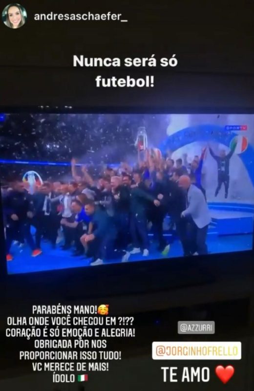 Nas redes sociais, o jogador replicou todo o carinho que recebeu de familiares e amigos que torceram por ele e pelo título da Itália. Confira as reações.