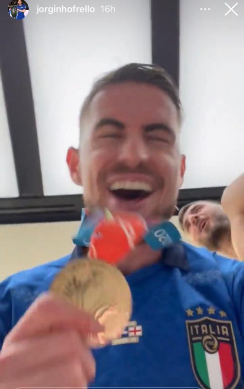 Jorginho com a medalha de ouro da Eurocopa neste domingo (11) – Foto: Reprodução/ Instagram