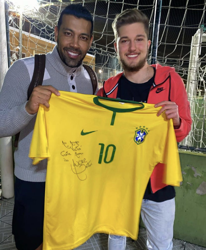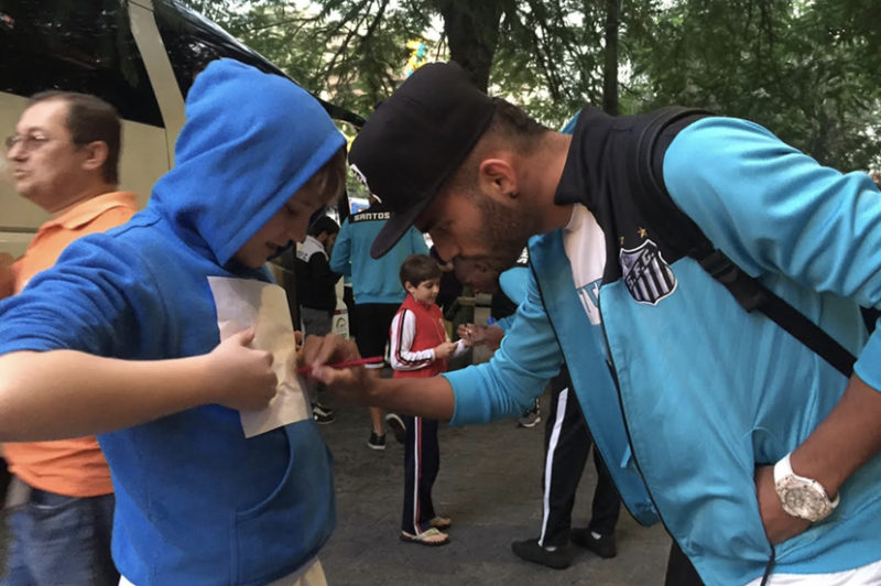 Caçar autógrafos não é uma tarefa fácil. Tem que ter paciência. Fruto, muitas vezes de grandes aventuras entre o fã e o ídolo. E o Victor, é claro, não escapou de ter vivido boas e engraçadas histórias para ampliar a sua coleção. “Uma das loucuras que já fiz foi ficar na frente do hotel Majestic mais de 7 horas aguardando a vinda do Neymar em 2012, no mês de agosto para a partida contra o Figueirense. Esperei todo esse tempo e descobrimos que o Neymar não veio junto com o elenco. Segundo o pessoal do hotel nos repassou, era de que ele viria de jatinho na manhã do outro dia. E mesmo assim cansado e já com o ânimo para baixo, fiquei mais 3 horas no outro dia esperando a vinda dele… O voo do jatinho atrasou e ele chegou aqui por volta das 10 da manhã. Contabilizando os dois dias foram 10 horas esperando pelo craque Ney !! E graças a Deus hoje tenho uma regata infantil do Santos da época em que eu jogava bola autografada por ele. Guardo ela no meu armário com o maior carinho”