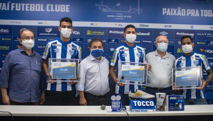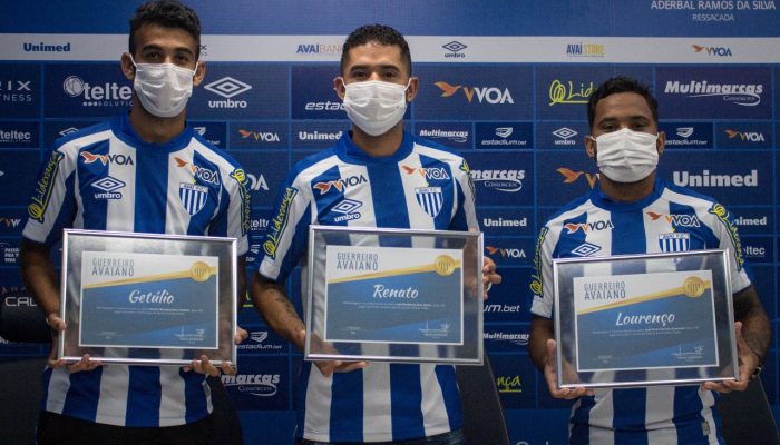 O Avaí homenageou no começo da tarde desta quarta-feira (5), no auditório da Ressacada, em Florianópolis, os atletas Renato, Lourenço e Getúlio, que completaram 100 jogos com a camisa do Leão no Campeonato Catarinense.