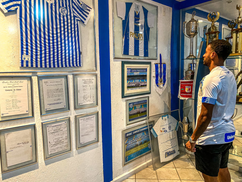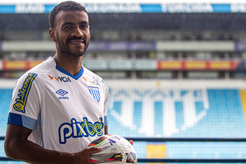 Mais cedo, o atacante Muriqui também foi apresentado oficialmente pelo Avaí. O atleta de 35 anos retorna ao Leão da Ilha após 13 anos – Foto: Leandro Boeira/Avaí/ND - 5 de 6