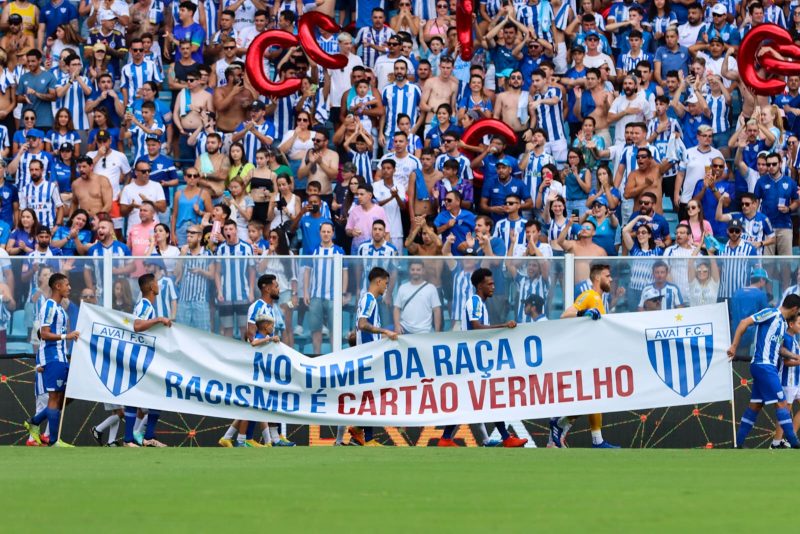 Campanha assinada pelo Avaí de combate ao racismo – Foto: Fabiano Rateke/Avaí FC/Divulgação/ND
