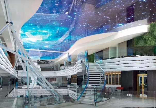 De acordo com o jornal britânico Daily Star, a embarcação tem seis piscinas, 14 jacuzzis com vista para o mar, restaurantes, lojas, bares, além de quadras de basquete e campos de futebol.