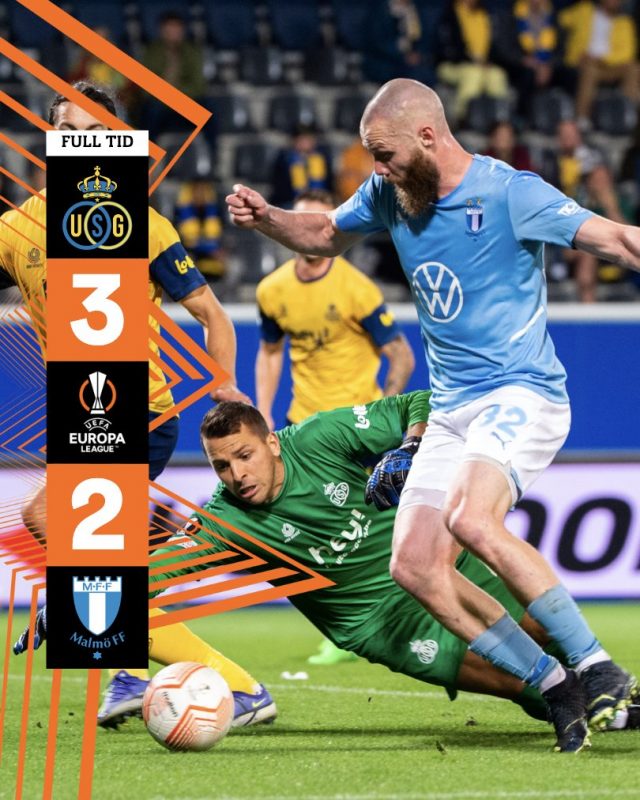 O Malmo e o Union fizeram uma partida animada com cinco gols, mas os suecos levaram a pior e perderam por 3 a 2. Os belgas ficam na 2ª colocação com seis pontos e o Malmo permanece zerado e na lanterna do Grupo D – Foto: @Malmo_FF/Reprodução/ND