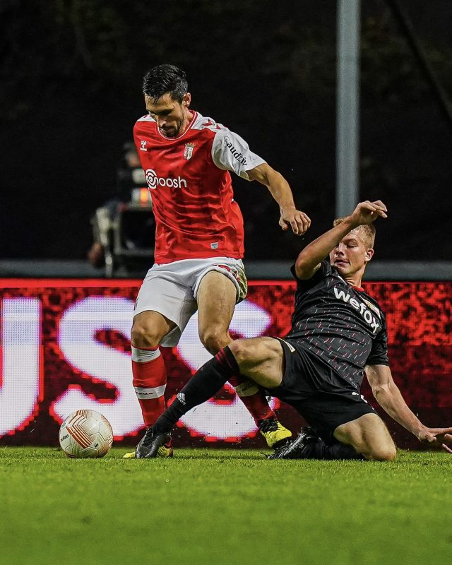 O Braga, de Portugal, fez valer o seu mando e venceu o Union Berlin, da Alemanha, por 1 a 0. Com o placar, os portugueses seguem com 100% de aproveitamento e na liderança. Os alemães permanecem fora da zona de classificação e ainda não pontuaram – Foto: @SCBragaOficial/Reprodução/ND - 14 de 15