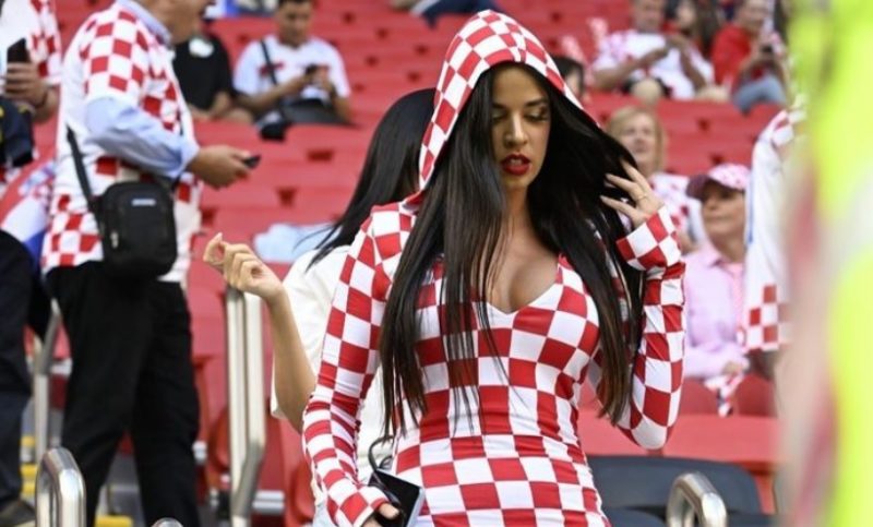Na estreia da Croácia no Mundial, no estádio Al Bayt, contra o Marrocos, a modelo utilizou um vestido longo, com capuz e todo quadriculado em referência à bandeira da Croácia em branco e vermelho.