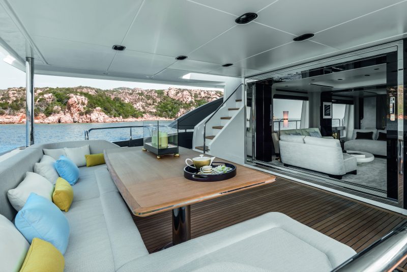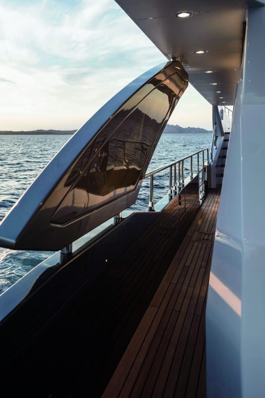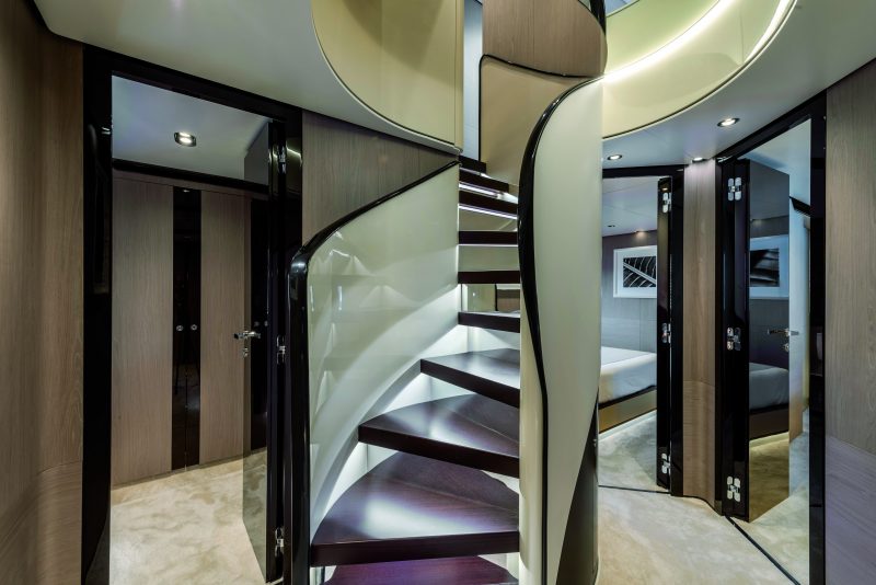 Embarcação conta com luxuoso material e escada chama atenção – Foto: Azimutyachts/Divulgação/ND