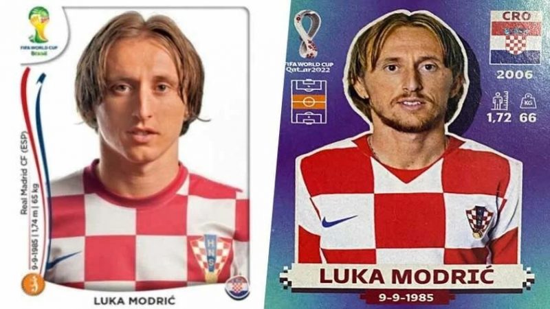 Mudou muito? O craque do Real Madrid, Luka Modric, apareceu pela primeira vez no álbum da Copa de 2014 – Foto: Panini/Reprodução/ND