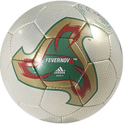 2002: A “Fevernova”, bola do penta do Brasil na Coreia e no Japão, foi a primeira bola da Adidas que saiu do modelo tradicional. Ela era dourada e trazia detalhes em verde e vermelho – Foto: Adidas/Reprodução/ND - 18 de 22