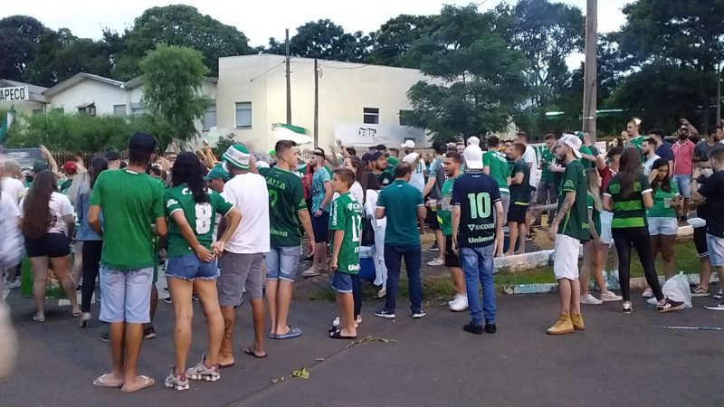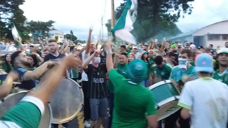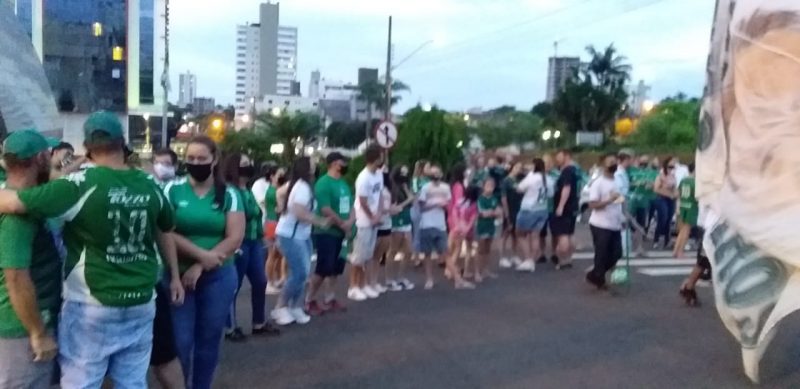 São torcidas organizadas e famílias que recebem o time verde e branco na Arena Condá. Por conta de protocolos de prevenção contra a Covid-19, os torcedores não podem entrar no estádio. – Foto: Diego Antunes/NDTV/ND - 4 de 4