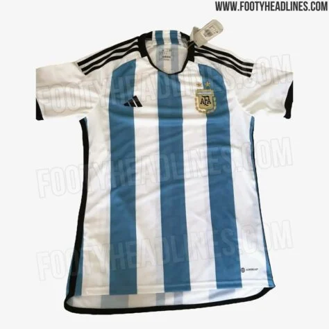 A Argentina ainda não teve seu novo uniforme lançado oficialmente pela Adidas, porém, o modelo acabou vazando na web – Foto: REPRODUÇÃO / FOOTY HEADLINES