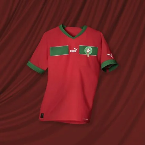 Com predominância em vermelho, a Puma lançou oficialmente a nova camisa do Marrocos para a Copa do Mundo – Foto: Puma/Divulgação