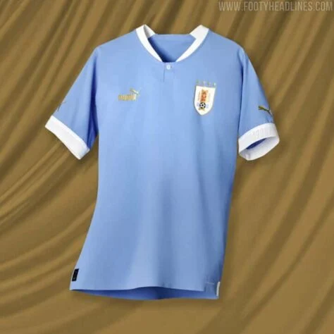 Novo uniforme do Uruguai tem detalhes em branco e dourado. Camisa foi lançada oficialmente pela Puma – Foto: Puma/Divulgação