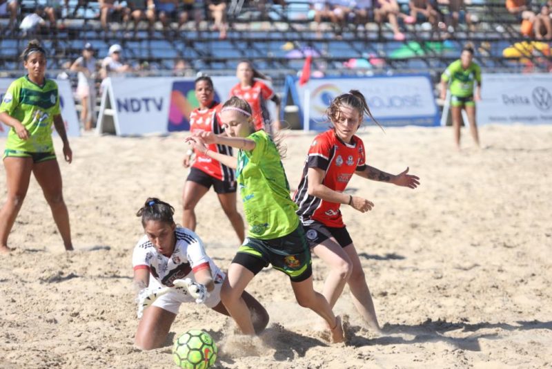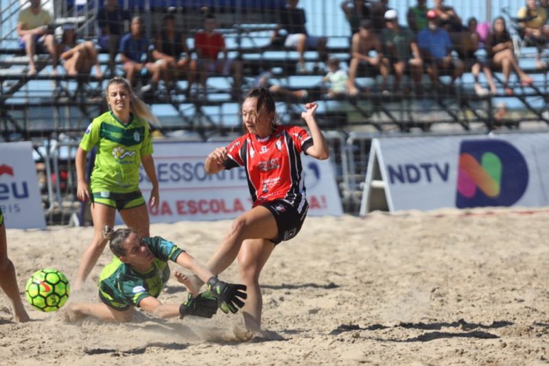Sábado, dia 12, quente nas areias de São Francisco do Sul, no Litoral Norte Catarinense. São três finais disputadíssimas. A primeira foi do Beach Soccer Feminino. A disputa na Arena da Enseada começou às 15 horas e foi entre JEC Audax X S.R. Enseada pela Taça NDTV de Beach Soccer .