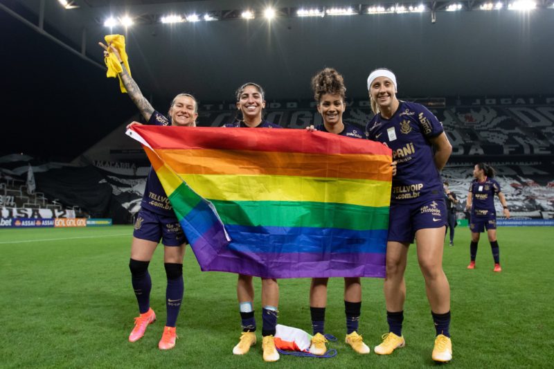 Durante a comemoração do título do Brasileirão Feminino, conquistado na noite deste domingo, Katiuscia, lateral do Corinthians, levou a campo uma bandeira do arco-íris, símbolo da comunidade LGBTQIA+. A atleta explicou a homenagem e pediu mais “amor e respeito”.