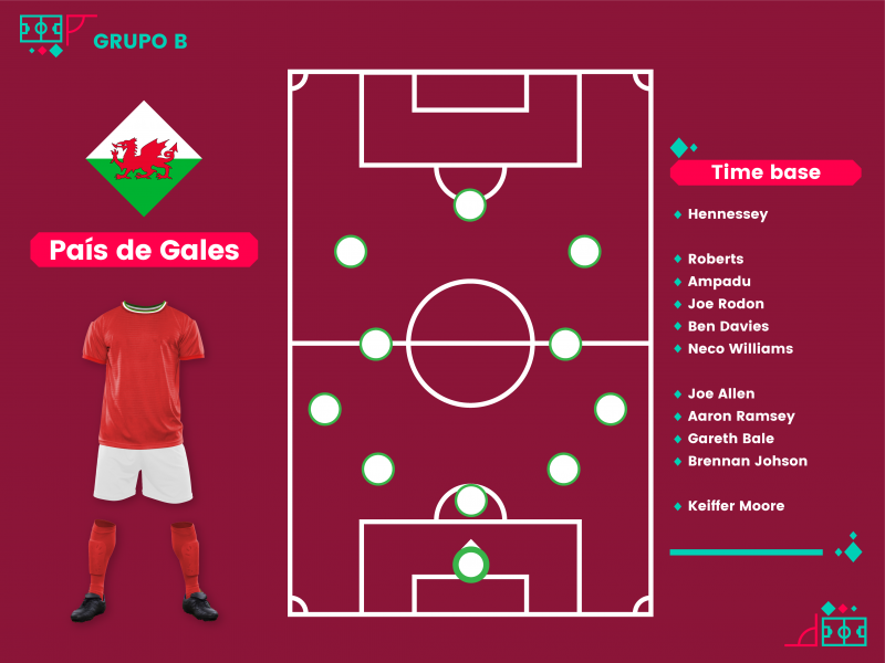 Após surpreender na Eurocopa de 2016, Gales tenta novamente fazer história, dessa vez em um Mundial e, para isso, a principal meta é tentar ser competitivo em um grupo bastante equilibrado pela segunda vaga com Irã e Estados Unidos.