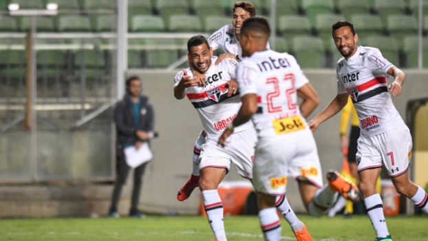 São Paulo (2018): Mas antes de o Palmeiras assumir a liderança e não largar mais em 2018, foi o São Paulo que ultrapassou o Flamengo e parecia seguir rumo ao título. O Tricolor tinha 41 pontos na primeira metade do Brasileirão, no entanto, não conseguiu manter a pegada e perdeu o título para o rival – Foto: Arquivo/Joao Guilherme/Raw Image/SPFC/ND