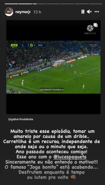 “Muito triste esse episódio, tomar um amarelo por causa de um drible…Carretilha é um recurso, independente de onde seja ou minuto que seja. Ano passado aconteceu comigo! Esse ano com o Lucas Paquetá”, escreveu.