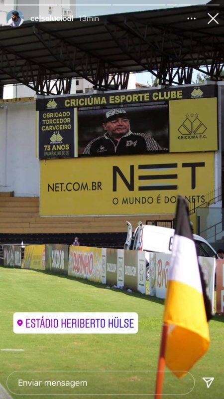Antes da partida entre Criciúma e Maranhão, pela Copa do Brasil sub-17, o Tigre fez um minuto de silêncio em forma de homenagem ao ex-jogador argentino – Foto: Reprodução/Instagram/ND - 5 de 5