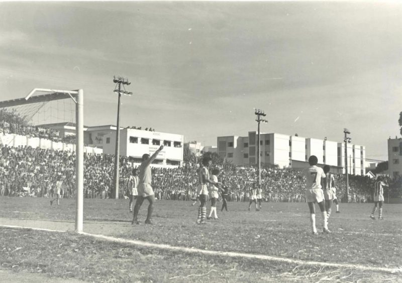 Assim como a tradicional falta de gramado na área do goleiro, que era cenário comum nos estádios da década de 70 – Foto: Acervo João Salum/Reprodução/ND