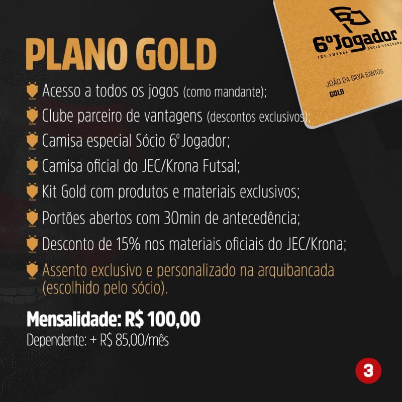 Entre as novidades está a possibilidade de o torcedor ter seu assento preferido em todos os jogos. A modalidade Gold permite ao torcedor marcar o assento para todas as partidas disputadas no Centreventos Cau Hansen com mando do JEC Futsal. Além disso, os torcedores podem adicionar dependentes aos seus planos.