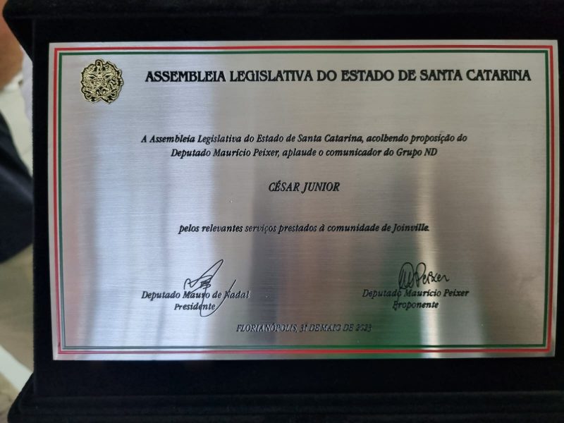 “É uma alegria muito grande para uma pessoa que merece, porque ele está ali falando, muita gente escutando, narrando aquele gol que a gente vibra mesmo dentro do estádio ou também no nosso carro, em casa. A gente vibra com a voz dele. É um excelente profissional que orgulha muito a cidade de Joinville, por isso a homenagem por esses 40 anos de vida profissional”, destacou o deputado.