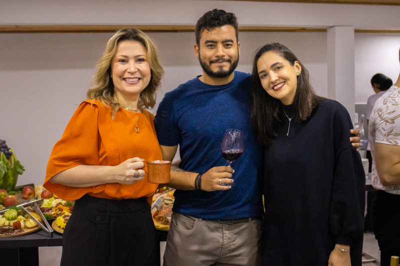 Zane Krutzsch Gava e Malu Testoni ao lado do empresário Alexandre Simas – Foto: Alfa Stofelli