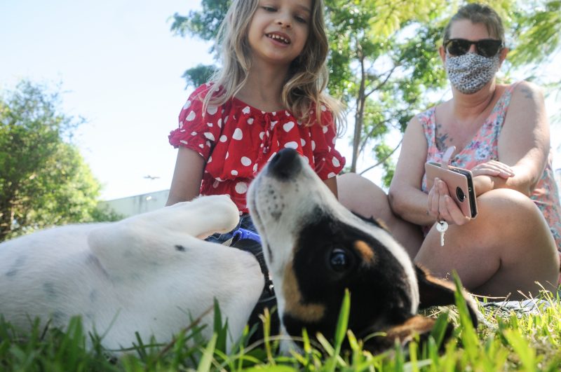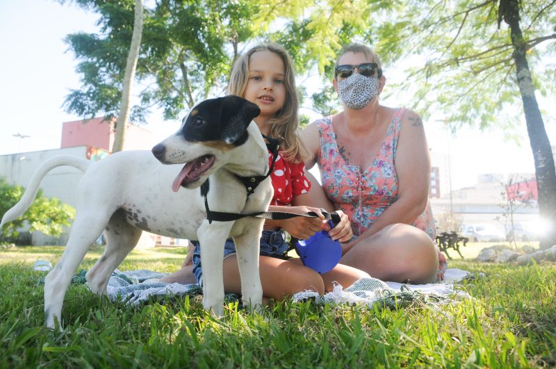 Ao passar pelo bairro nesta quinta (18), ela notou que a situação estava melhor, e usufruiu do parque com a filha, Pietra Tondello, de cinco anos, e sua cachorrinha Lupita. “Hoje deu pra sentar aqui. É maravilhoso, a gente pode dar uma escapadinha, eu vim até o bairro para ir até o posto de saúde e resolvi ficar pra curtir um pouquinho” conta Maria Salete – Foto: Leo Munhoz/ND