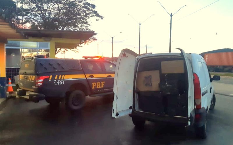 Uma carga com cerca de 14 mil maços de cigarros foi apreendida na manhã de terça-feira, na BR-280, em Jaraguá do Sul, no Norte catarinense. A PRF também acabou prendendo o condutor do furgão que estava com a carga – Foto: Divulgação/PRF - 10 de 10