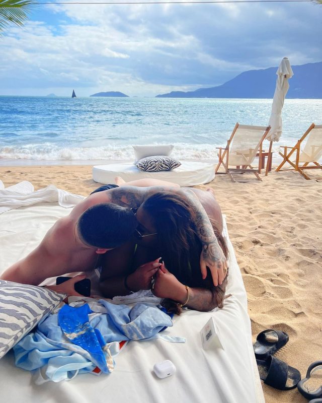 Na última foto, os dois aparecem deitados em um colchão, dando um beijo, com o mar ao fundo. – Foto: Instagram/Reprodução/ND - 7 de 10