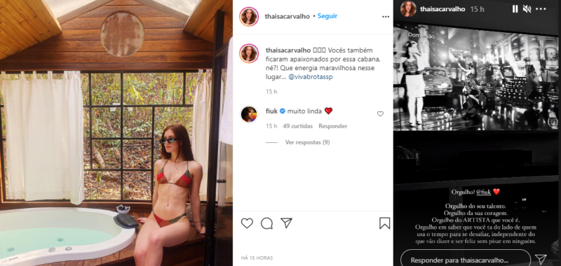 Fiuk e Thaisa curtiram dias em um ecoparque com cabanas de luxo e, embora não tenham posados juntos, eles mostraram detalhes do local em seus perfis na internet, deixando claro que estavam no mesmo lugar.