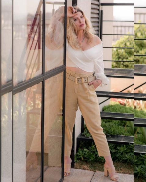Nas publicações, a loira dá dicas de moda e composições. “Que tal um look neutro da cabeça aos pés, com a mistura das fibras naturais tanto na roupa como no calçado”, comentou – Foto: Internet/Reprodução/ND